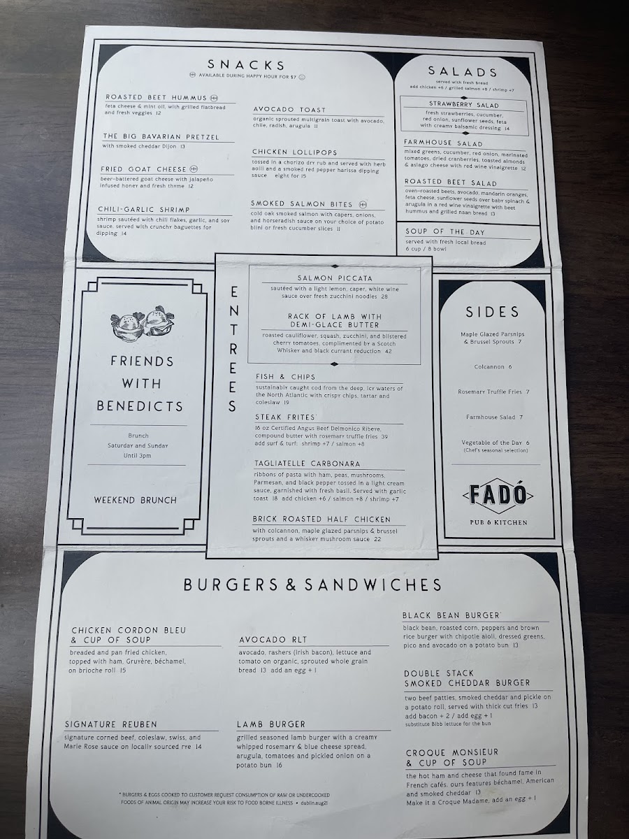 Welcome to Fado Pub & Kitchen, a true gem nestled in Dublin, Ohio. This vibrant eatery combines the essence of traditional Irish cuisine with a relaxed yet upscale atmosphere, making it a perfect spot for any occasion. Guests rave about the delightful selections, from hearty Fish and Chips with crispy wedges and tangy coleslaw to the comforting Shepherd’s Pie, best enjoyed with a refreshing Guinness.
